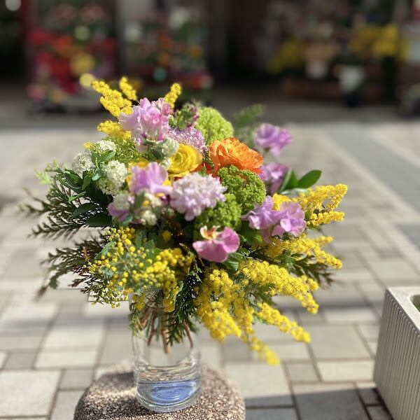 ミモザと春のお花でふんわりと仕上げたブーケです